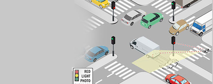 A virtual line is defined for each junction such that when the traffic signal light turns red the ANPR camera is triggered and if any vehicle crosses the virtual line, it captures images of the vehicle and its number plate. The evidence camera captures the entire junction as well as the traffic signal. It takes multiple images of the vehicle while the signal was amber and red.